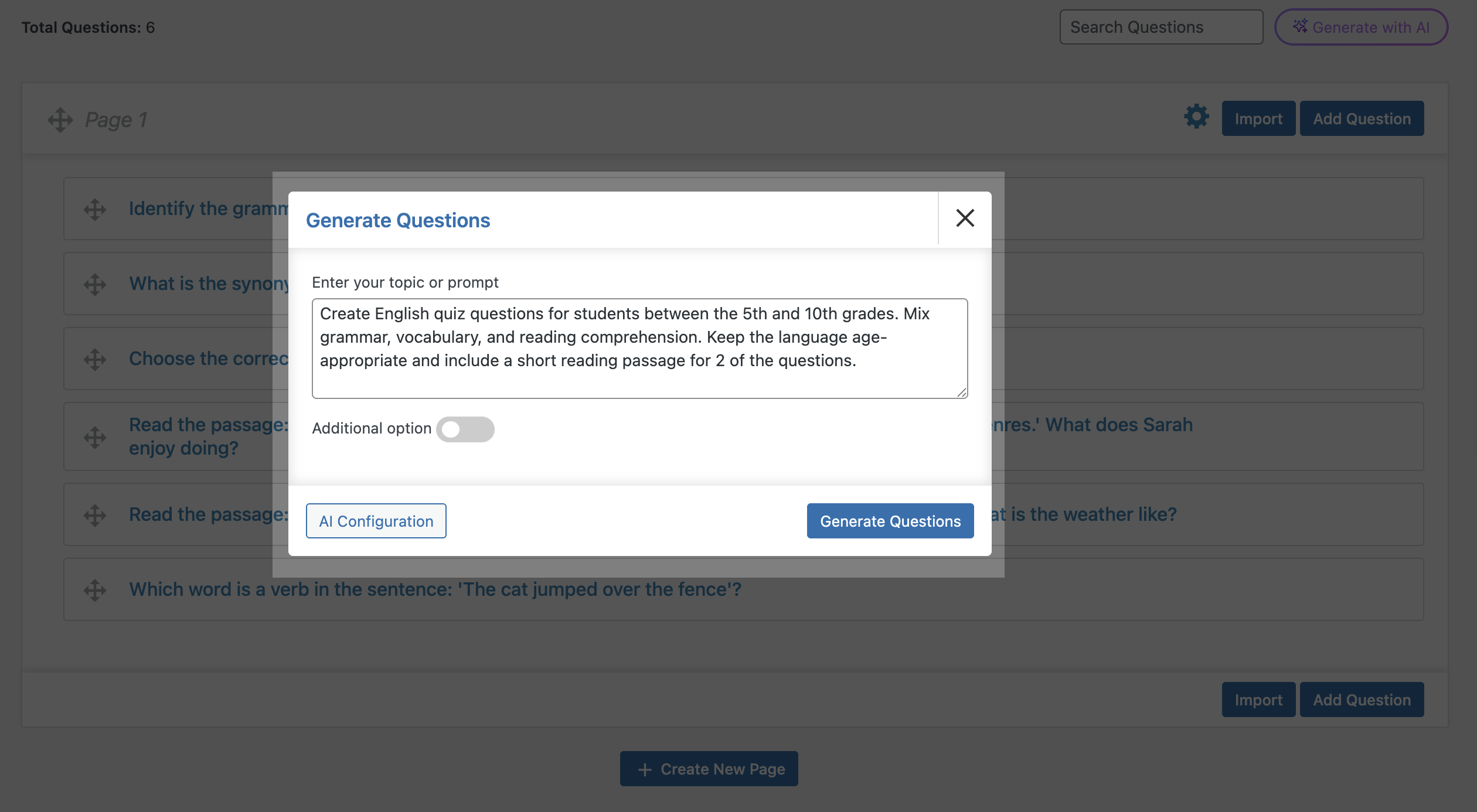 The best part about integrating AI into QSM is its ability to instantly generate questions & answers for any type of quiz or survey, by simply providing a detailed prompt.